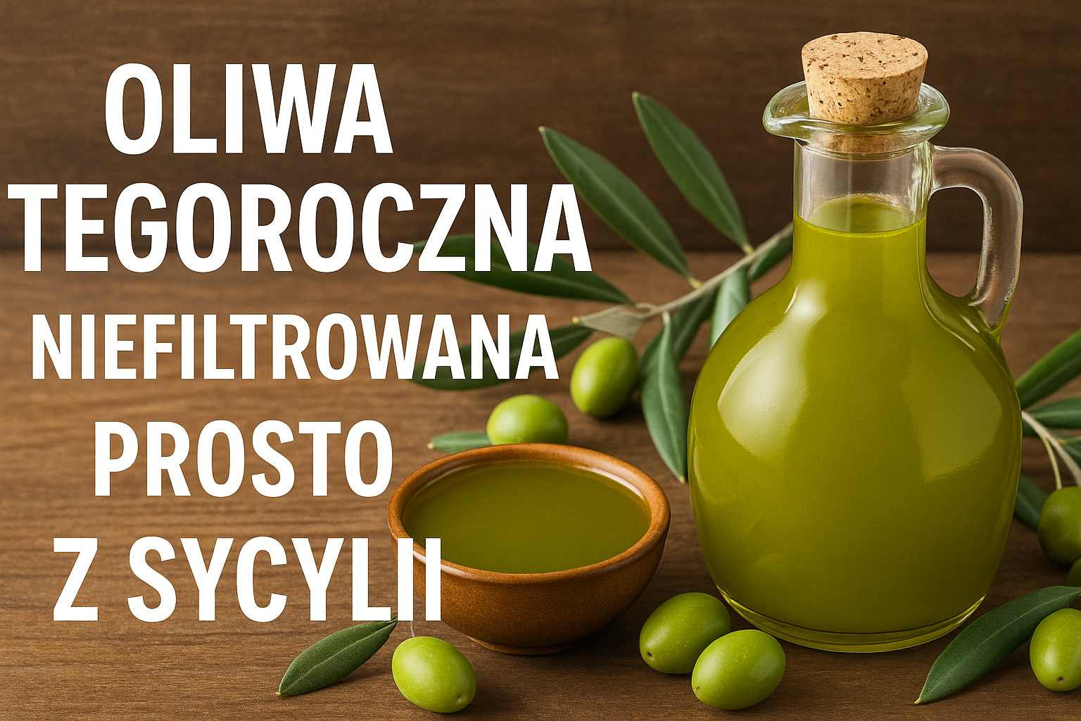 Tegoroczne, niefiltrowane oliwy extra vergine z włoskich oliwek, tłoczone na zimno.